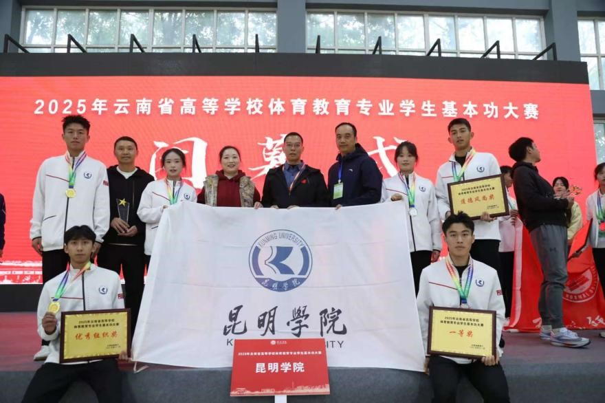 10月31日至11月3日,由云南省教育厅主办,云南省学校体育教学指导委员会、红河州教育体育局、红河学院承办的2025年云南省高等学校体育教育专业学生基本功大赛在红河学院举行,来自全省20所本科高校的代表队同台竞技。经过激烈角逐,昆明学院代表队凭借过硬的专业素养和出色的综合表现,荣获“团体一等奖”(团体总分第三名),同时获“优秀组织奖”“体育道德风尚奖”;两位指导教师荣获“优秀教练员”;6名参赛学生中,3人获一...