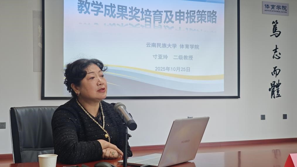 为提升体育教育专业人才培养质量,助力学院备战2025年云南省体育教育专业基本功大赛,推动教学成果奖培育与申报工作,10月20日,体育学院特邀云南民族大学体育学院二级教授、硕士生导师寸亚玲老师莅临指导,为师生带来“专业备赛指导+教学成果奖专题讲座”的双重学术指导。