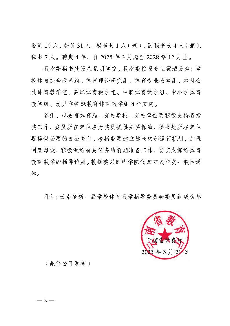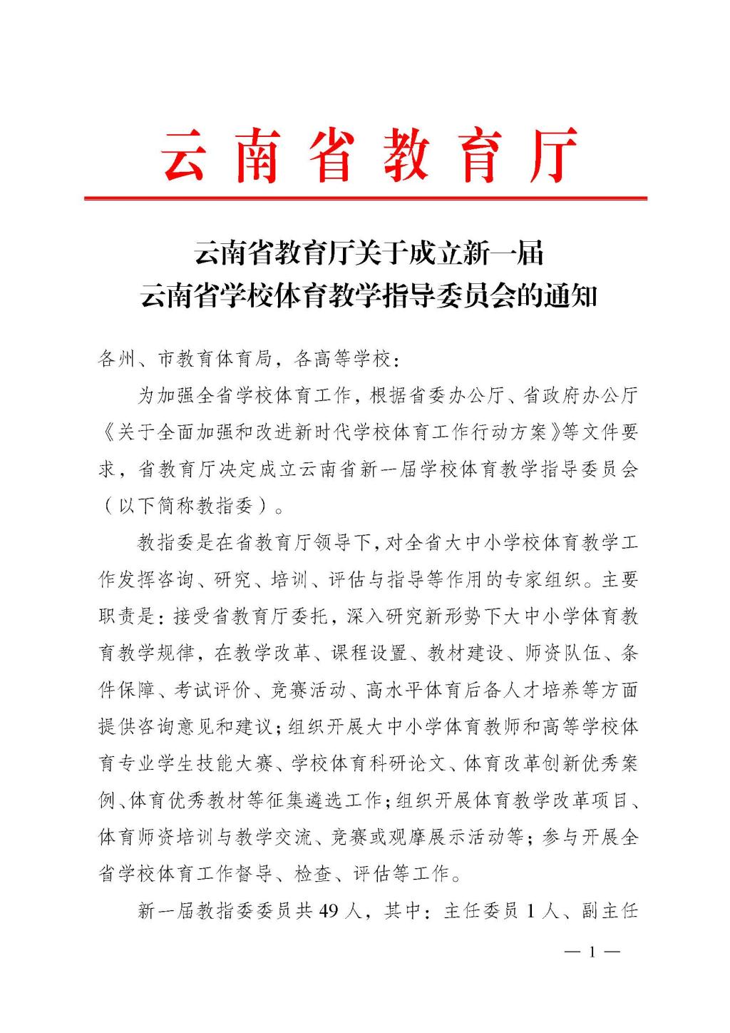 附:《云南省教育厅关于成立新一届云南省学校体育教学指导委员会的通知》
