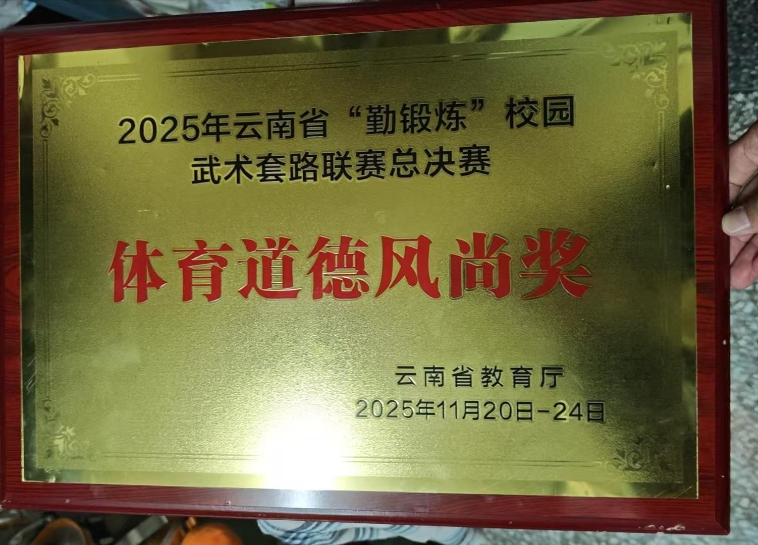 2025年11月20日至24日,“2025年云南省‘勤锻炼’校园武术套路联赛总决赛”在怒江州民族体育馆举行。我校派出7名队员,在徐立宏老师带领下参赛,最终取得4枚金牌、2枚铜牌的优异成绩,并获“体育道德风尚奖”。