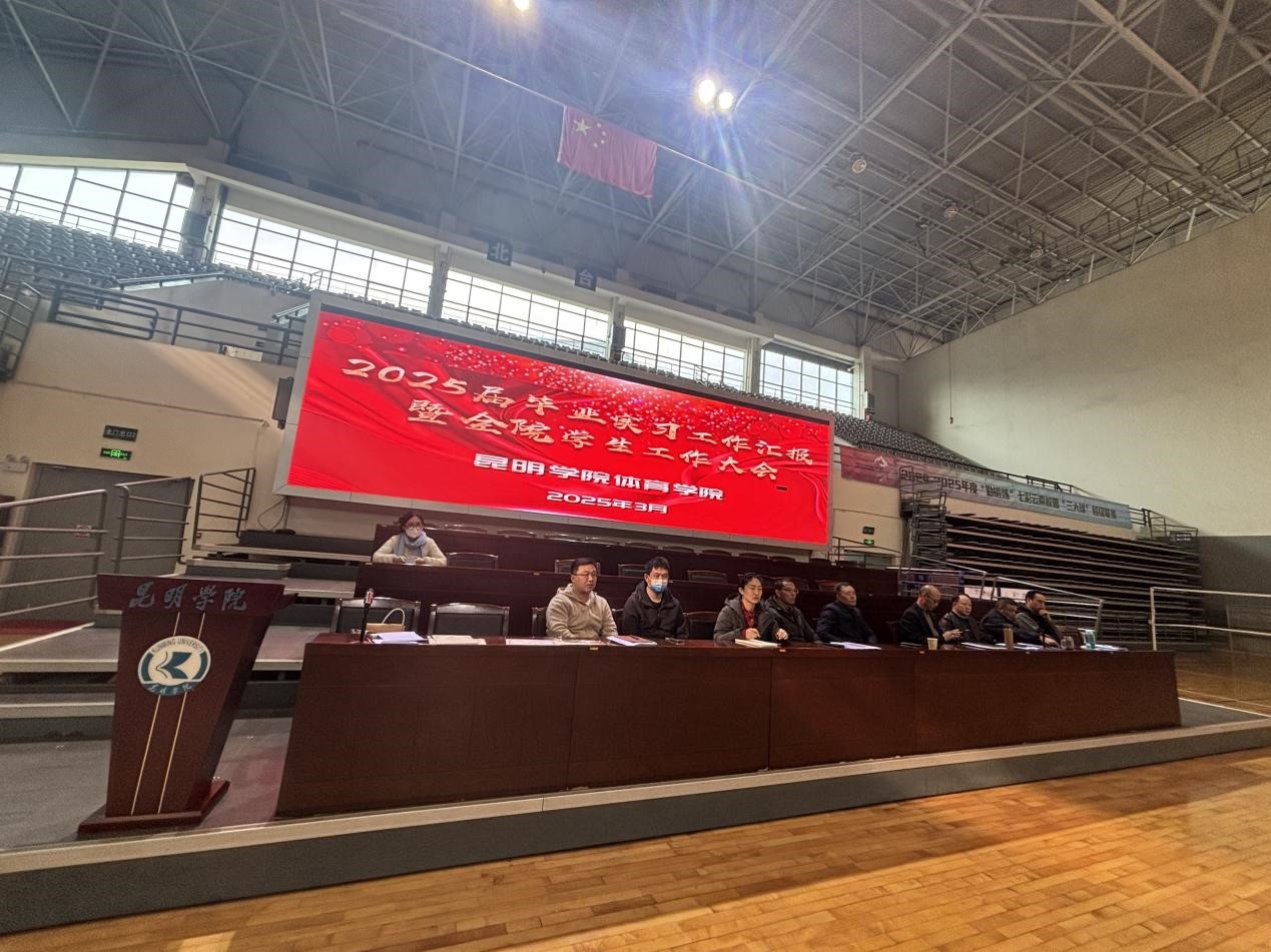 2025年3月7日下午,体育学院在综合馆举办了2025届毕业生实习工作汇报暨全院学生工作大会。学院领导班子以及相关教师出席了此次会议,大会由党委委员、体育教育专业理论及实践教研室主任周国霞主持。