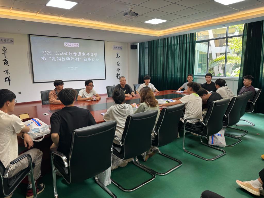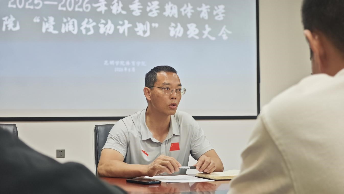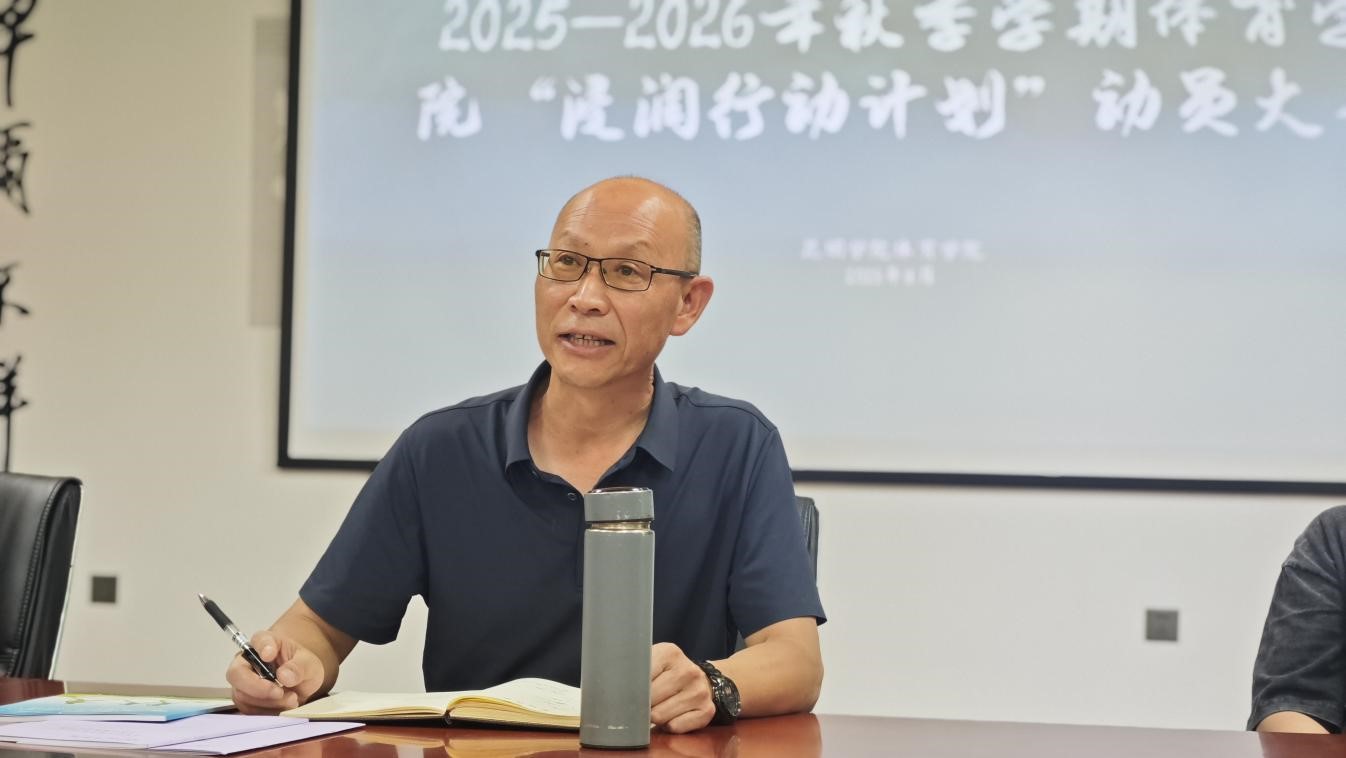 2025年8月30日,昆明学院体育学院组织召开了2025-2026学年秋季学期“浸润行动计划”专题动员会,全面部署实施第五期云南省学校体育美育浸润行动计划。学院党委书记马加升、院长王玉洪、副书记徐学睿等学院领导、教师代表与四十名即将赴帮扶地区开展工作的学生共同出席会议。会议由院长王玉洪主持。