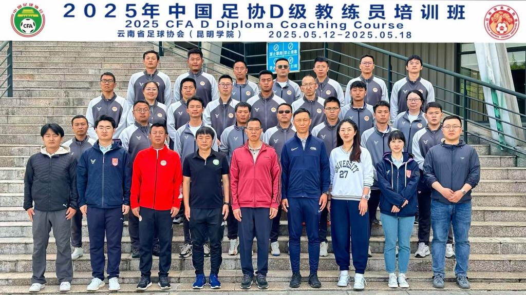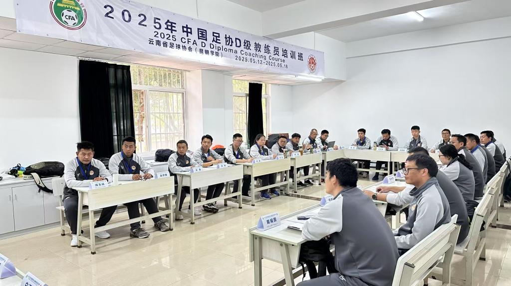 云南省全国青少年校园足球教师省级专项培训共分5期进行,吸引了来自昆明市各区县的中小学体育教师共100名学员参与。第一期培训时间为2025年5月12日至2025年5月18日,为期7天,共有昆明市各区县的中小学体育教师20人参加。学员需通过严格的理论考核、模拟课堂与实践评估可获得结业证书,通过相应考试可获得中国足协D级教练员资格证书。